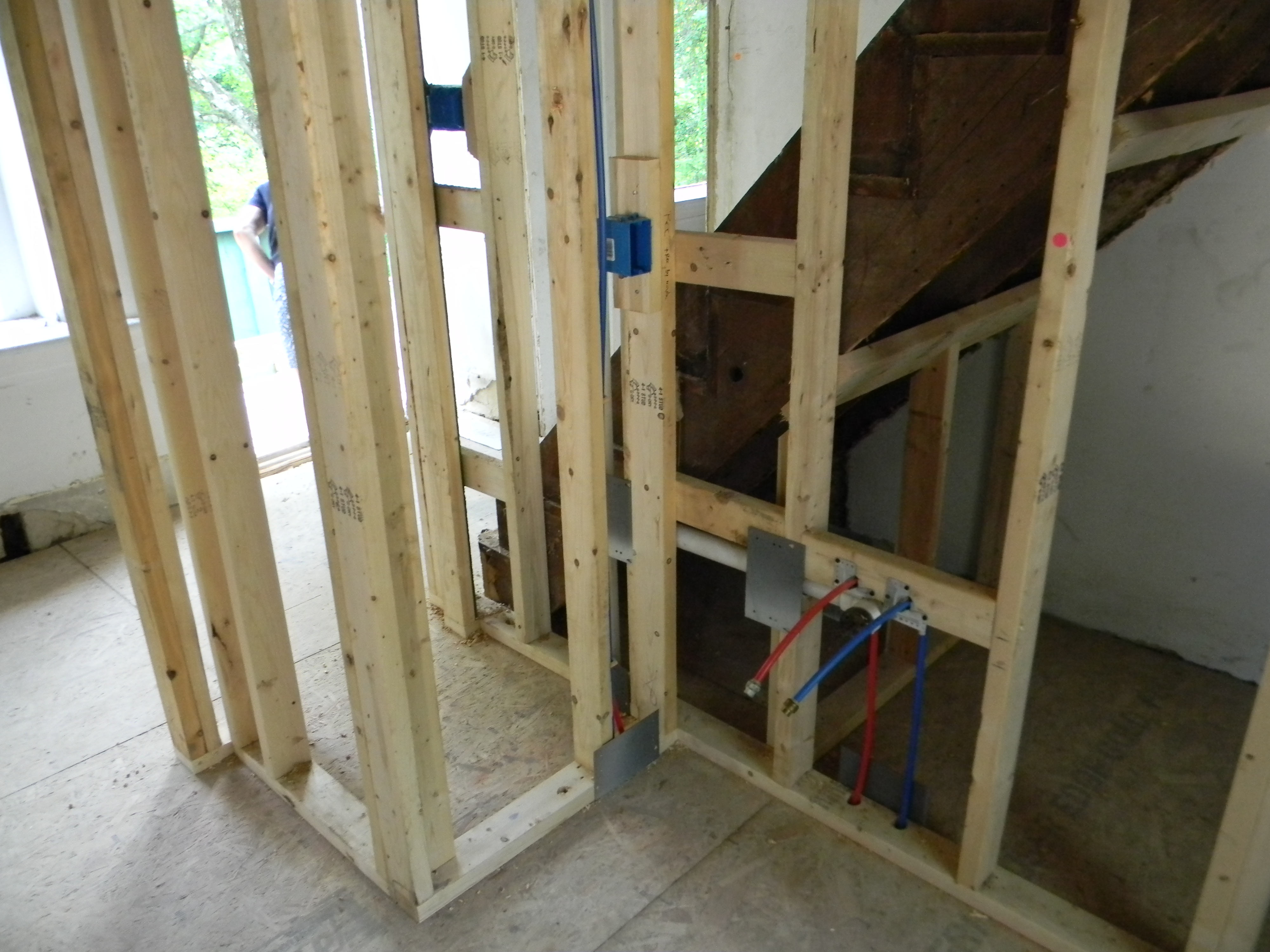 The infrastructure phase seems to have been going on forever. It’s all important stuff – electric, water, heating and air conditioning. And it comes with a lot of decisions. Exactly where do we want outlets placed? And where should the switches be? And which outlets should they work? It was a longer (and harder) thought process than I expected. Don’t you just walk into a room and flip on the light? But now we had to figure out – if we turn the light on at the bottom of the stairs, do we want to be able to turn it off at the top of the stairs? And if we wake up in the middle of the night and hear a noise in the back pasture – do we want to run down to the kitchen to flip on the flood light – or would it make sense to have a light switch for the flood light in the bedroom, too? (Thanks, cousin Bruce – for that great idea!).