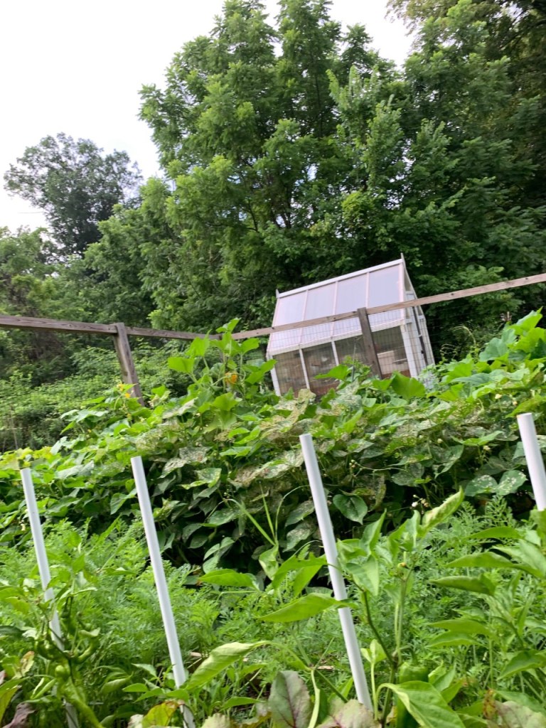 The tomatoes (yes…45 tomato plants) give me about six to ten pounds of tomatoes per day – some are paste tomatoes, some are slicing tomatoes with a few are cherry tomatoes thrown in for variety. I have three varieties of green beans and pick about two to three pounds per day. The zucchini – well, let’s just say I can’t even keep track of them. The cucumbers get hacked up every day or two and turned into pickles. The beets are pickled, the onions are drying, the cantaloupe and carrots are still growing. And our freezer is full.