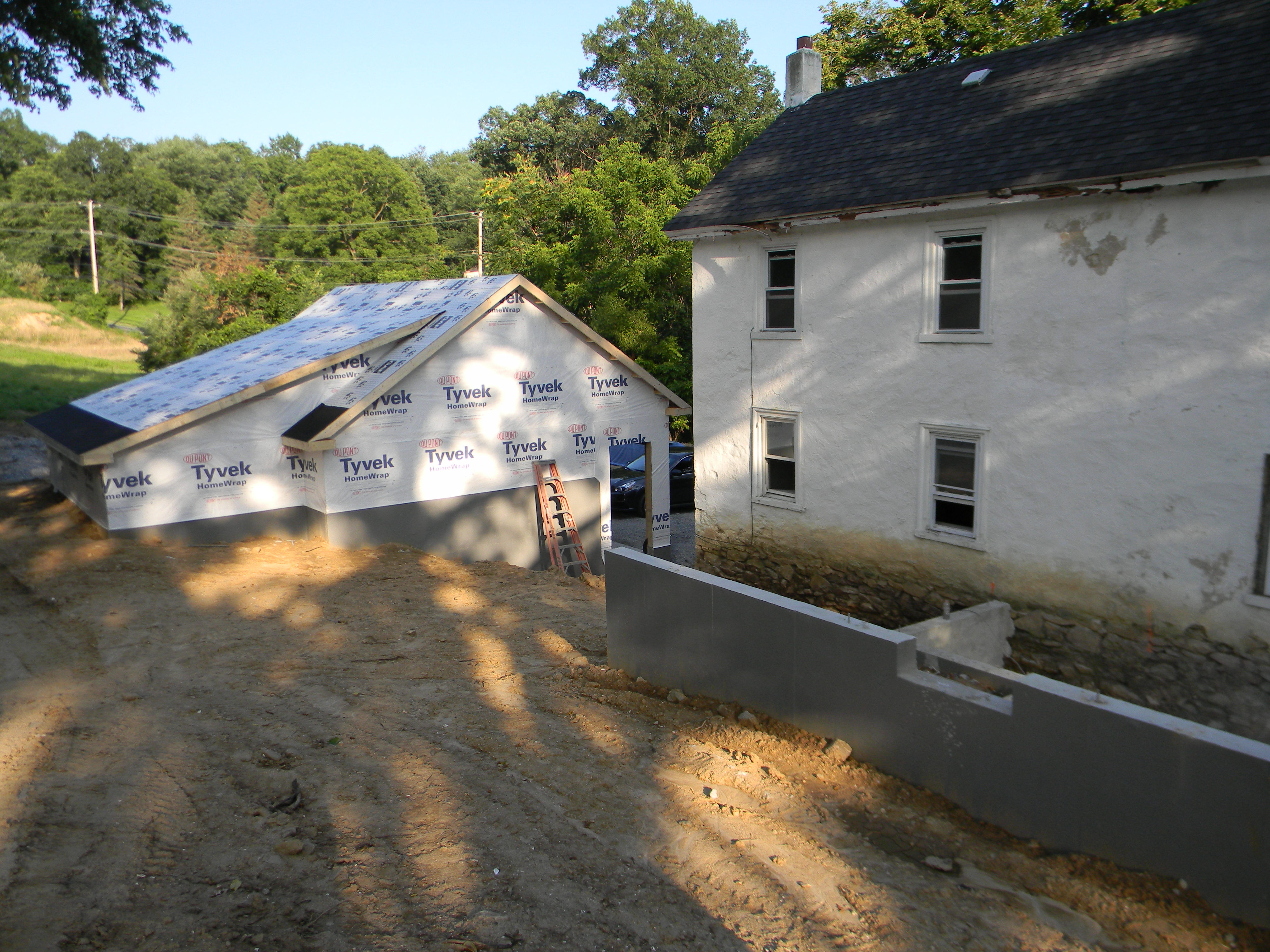 Arianna got to share in the inaugural ride, and Opa even let her steer a little bit. We celebrated with a picnic of hot dogs on the front lawn — because there is really no other place to sit. The backyard, where the patio will be, is full of bricks and a cement mixer since they are in the middle of building the chimney. The garage is full of construction materials — and the house is full of dust. A blanket under a tree in the front yard next to the dumpster full of remodeling debris was about as good as it gets. To quote Arianna “This is gonna be so much fun.” And it was.