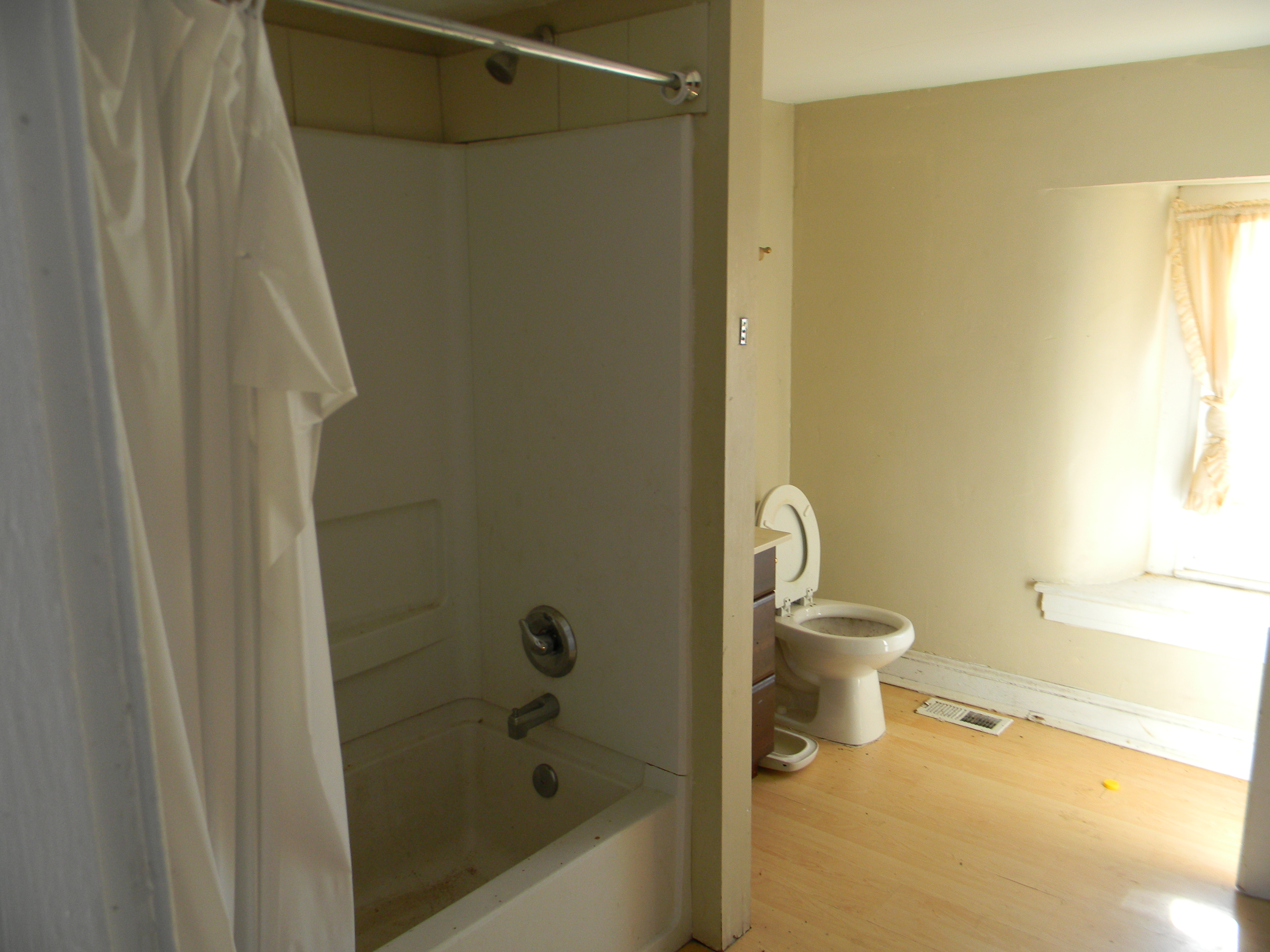The upstairs of this house was a mess. The carpet was filthy. Walking across it left footprints in the dirt that had rained down from the attic. The bathroom was disgusting. The toilet had a rag stuffed in it. The tub was falling off the wall. The linoleum was peeling. It wasn’t very pleasant.