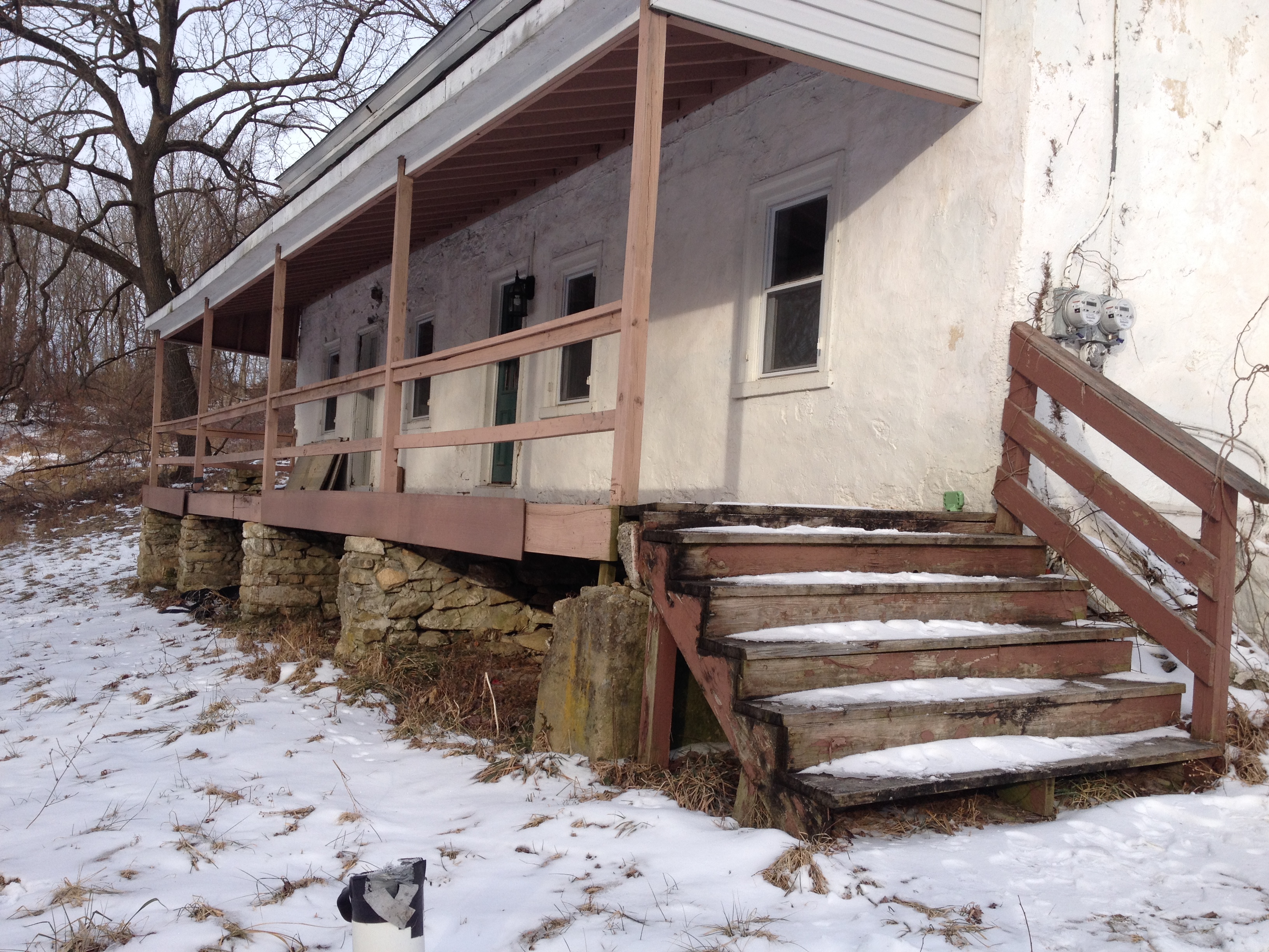 Repurposed half stairs to the porch. We need something sturdier for moving day!