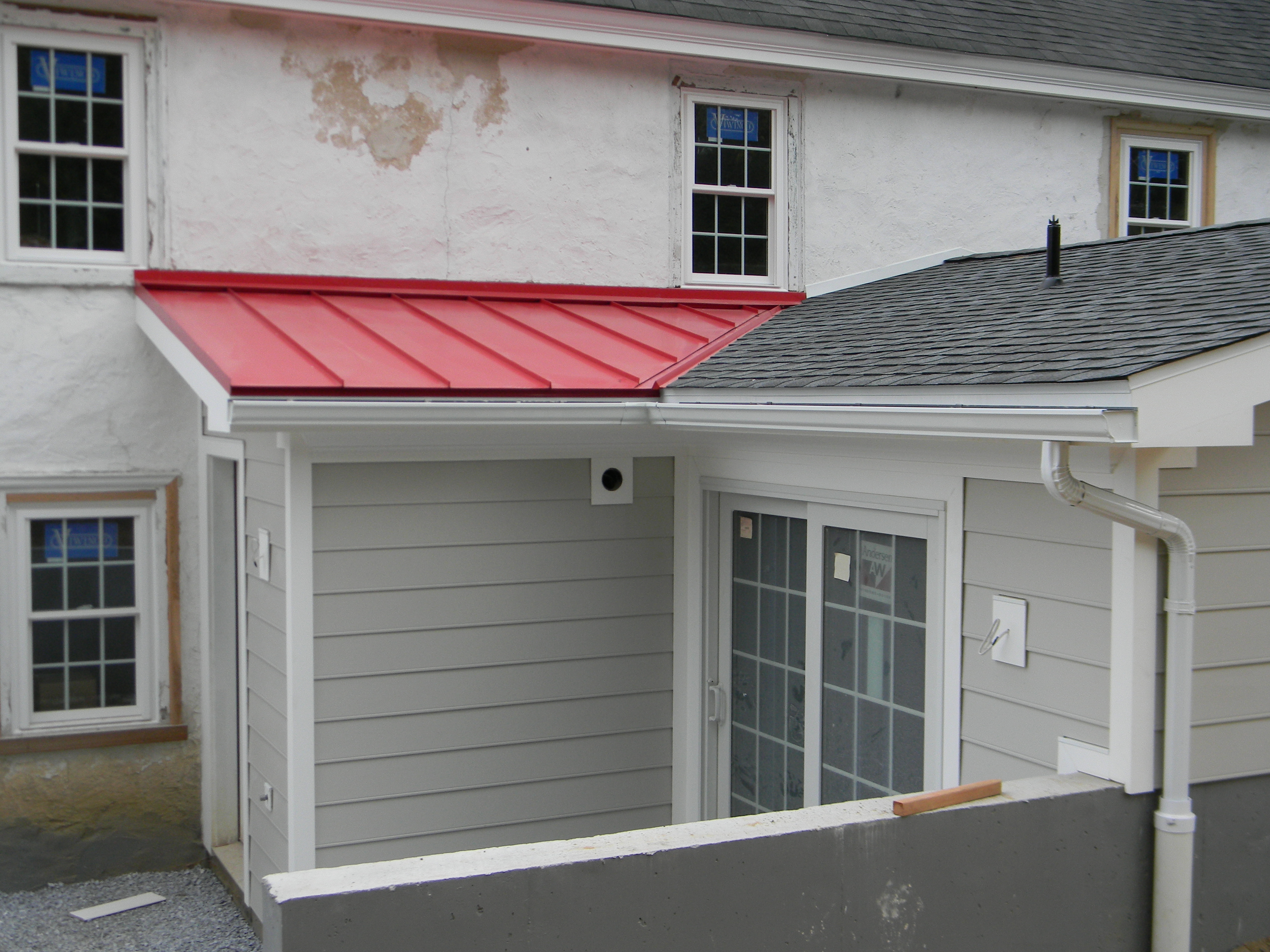 Our mud room red roof gives the look of a “potting shed” — which seems fitting given all the mud that’s readily available at the back door from storm run off. If only the weather holds out and we can get the concrete poured next week.